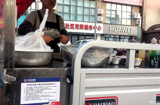 2023年11月17日以来,区市场监管局组织辖区市场监管所及各社区食安员,为辖区定点经营食品小摊点逐户发放《伊滨区食品小摊点规范经营提示卡》,要求食品小摊点经营者规范经营,守法经营。