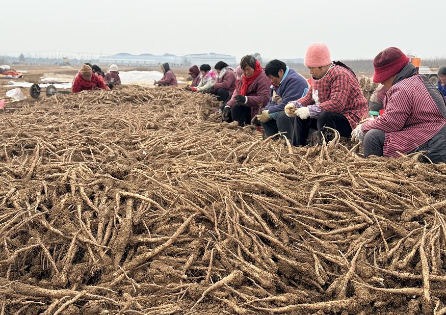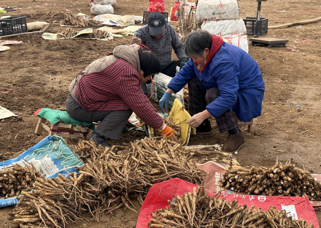 为降低市场风险、节约保存成本,谢江峰采用“订单农业”模式,提前与成品山药种植户签订购销合同,待合同敲定后再启动采收工作,做到“按需采挖、精准销售”。“我们每天大概能挖2到3亩地,收获山药种子约4万棵,按照目前的采收进度,整个采收工作大约需要一个多月才能完成。”谢江峰表示,当前山药种子市场行情波动,每亩收入2000余元,经济效益可观。据悉,这批山药种子预计3月份可全部采收完毕,采收结束后将种植花生,实现土地的高效循环利用。